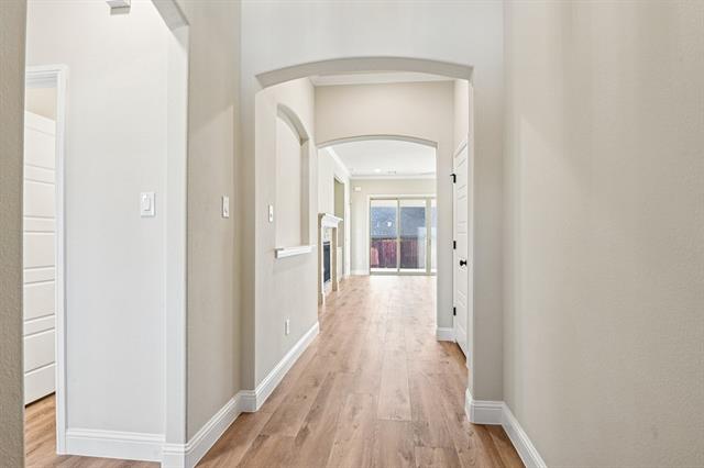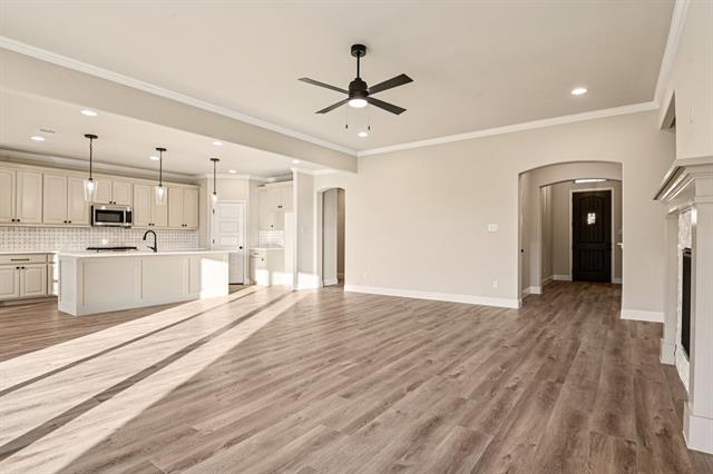 New construction by Arcadian Select Homes! This thoughtfully designed 2,208 sq ft home offers 3 bedrooms and 2.5 baths with a modern, open-concept layout. Durable luxury vinyl plank flooring flows throughout the main living areas, complemented by sleek black fixtures and contemporary finishes. The kitchen features stainless steel appliances and opens seamlessly to the living and dining spaces—perfect for everyday living and entertaining. A sliding back door leads to a covered back patio, extending your living space outdoors. Additional highlights include a full sprinkler system and a builder warranty for peace of mind. 4.75% fixed interest rate available—ask for details! A perfect blend of style, quality, and value in a brand-new home.