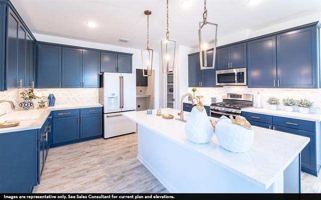 Beautiful open concept layout with 2 story ceilings in the family room This home has 2 beds and 2 full baths on the main level. It also comes with a media room and a game room which overlooks the main living area and entry. This home sits on beautiful homesite with a privacy brick fence at the back and the walking trail behind that The community amenities include a fitness center, pool with waterslides, a community garden, community kitchen, ampitheatre for events, which are planned by the onsite lifestyle coordinator. Tennis - Pickleball courts to come. It's like living on a vacation resort in a top rated school district! Don't miss this opportunity!