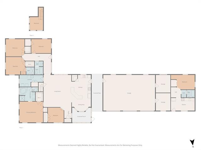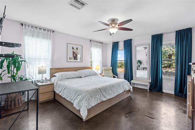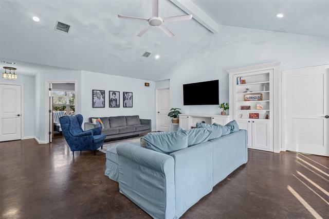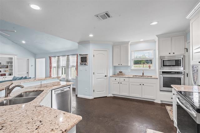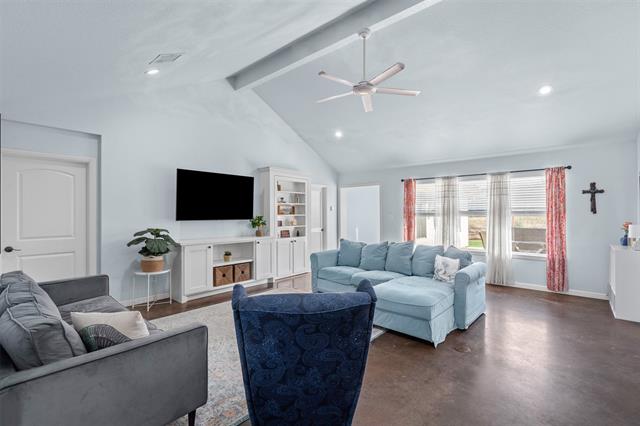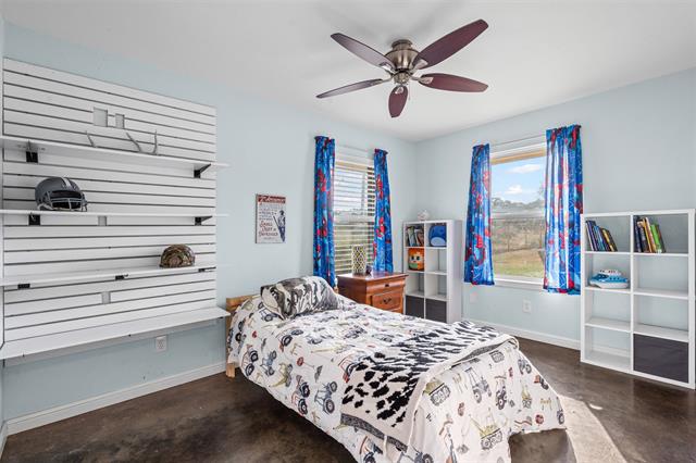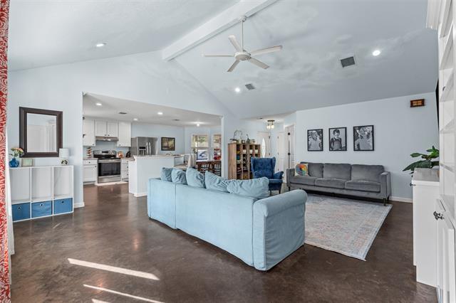 Large Home with Guest Quarters - Space, Comfort, & Versatility Await! Nestled on over 2 acres just outside city limits, this 5-bedroom, 3-bathroom residence offers the perfect blend of country charm & urban convenience. With an oversized 3-car garage & additional storage, this property is ideal for those seeking a tranquil yet connected lifestyle, complete with space for animals & personal projects. Step inside to discover an open-concept design that seamlessly connects the inviting living & dining areas. The living room, distinguished by its vaulted ceiling & custom built-ins, provides a welcoming atmosphere for relaxation or entertaining. The spacious kitchen serves as the heart of the home, boasting dual sinks, a generous pantry, & a breakfast bar accommodating numerous barstools, perfect for morning meals & social gatherings. All five bedrooms feature large closets, ensuring ample storage for everyone. A hidden bonus room upstairs offers endless possibilities, from a playroom to a quiet escape. One bedroom is ideally suited for a home office, catering to your remote work needs. The large laundry room is a practical delight, equipped with a folding area, extra storage, a sink, & convenient laundry chutes from the bathrooms. For added peace of mind, an underground storm shelter is accessible from within the home, providing security in inclement weather. You'll be surprised to find the separate fully equipped guest quarters with a bedroom, bath, & kitchen, affording privacy and comfort. Outside you'll find a large patio inviting outdoor dining & relaxation, while the landscape features mature trees that offer natural privacy. The fenced grounds are ready for your animals, & a chicken coop adds a touch of farm-to-table living. With a durable metal roof and easy-maintenance stained concrete flooring throughout, your new home promises durability & style. Embrace the best of both worlds—country serenity & city proximity—in this exceptional property.