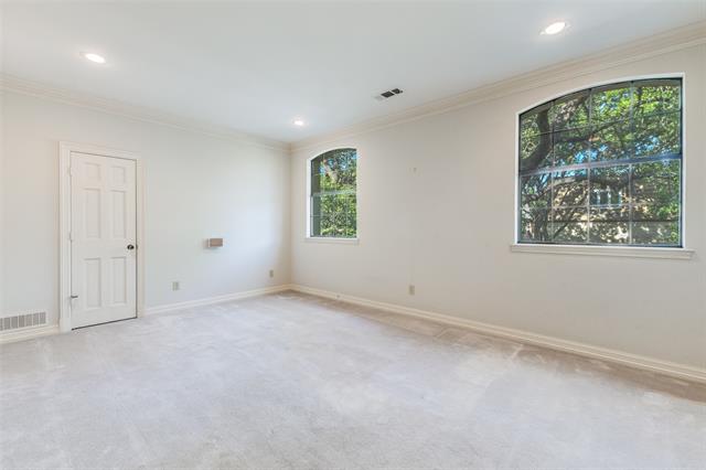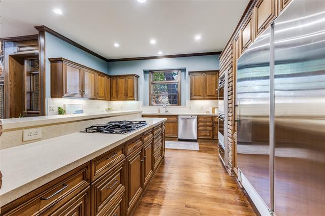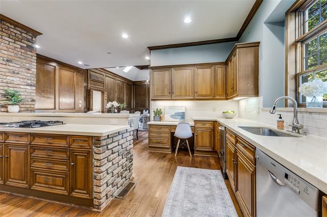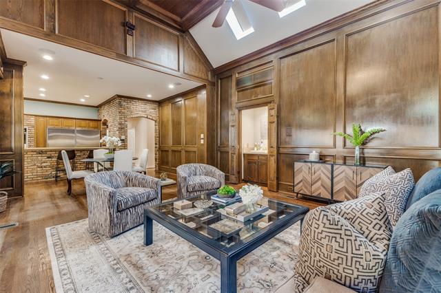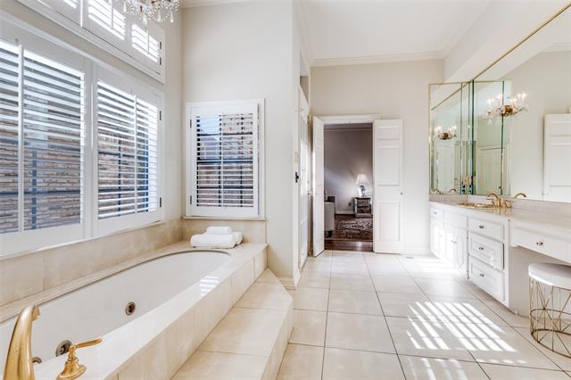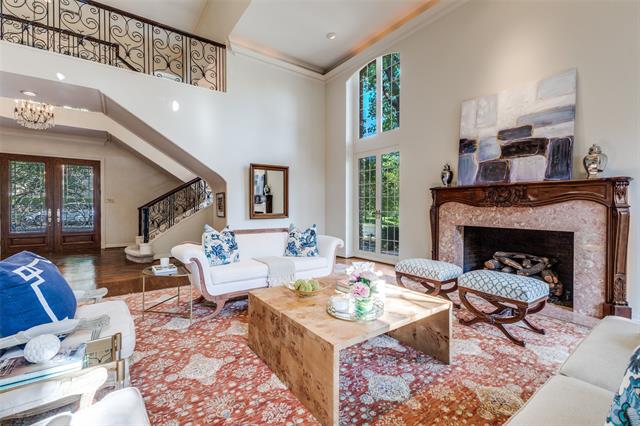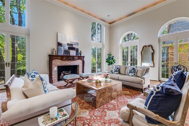 Back on market at no fault of the property due to buyer financing. Located in the prestigious gated community of Glen Lakes, this elegant home blends timeless architecture with thoughtful updates. Tall ceilings, intricate moldings, and rich hardwood floors create a warm and inviting atmosphere designed for both entertaining and everyday living. The main living area features a gas fireplace with a marble surround, framed by floor-to-ceiling windows offering serene views of the creek and walking trail. A second living area with its own marble fireplace opens to the chef’s kitchen, showcasing a built-in gas range, double ovens, warming drawer, and Sub-Zero refrigerator, freezer. The grand primary suite is a private retreat with its own marble fireplace, direct courtyard access, dual walk-in closets, and luxurious his-and-hers baths—one with a soaking tub and the other with an oversized shower. Additional highlights include a circular drive with ample parking, pier and beam foundation, three HVAC units, and a roof and gutters and skylights replaced in June 2025. The turfed courtyard provides the perfect low-maintenance outdoor space. Glen Lakes offers 24-hour guarded security, tree-lined streets, sparkling lakes, fountains, and scenic jogging and biking trails. Perfectly located near NorthPark Center, Preston Center, SMU, and the Dallas Arts District, this community provides both tranquility and convenience.