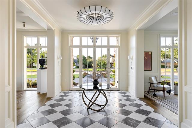 Nestled in Preston Hollow, 5610 Lobello Drive is a newly constructed Georgian-inspired estate built by Pierce Jordan Development that epitomizes timeless Southern elegance. Spanning 7,890 square feet on a meticulously landscaped half-acre lot, this home offers a harmonious blend of classic design and modern amenities, making it an ideal sanctuary for family living.The residence features five generously sized bedrooms, six full bathrooms, and two powder rooms, ensuring comfort and privacy for every family member. Classically scaled rooms are designed for both formal and informal entertaining, with interiors showcasing marble, limestone, and wide-plank wood flooring. Custom cabinetry and hand-troweled plaster finishes add to the home's sophisticated ambiance. A chef’s kitchen equipped with Thermador appliances and luxurious marble countertops serves as the heart of the home. The gracious primary suite includes a private coffee bar, a luxurious marble-clad floating tub, and a dressing room with an additional laundry closet, providing a serene retreat within the home. Designed to accommodate modern lifestyles, the home features a study, game room, office, den, and a lounge with a bar, offering versatile spaces for work and leisure. The property includes a 40-foot-long pool and spa, an outdoor kitchen, and a gracious indoor loggia leading to a covered outdoor terrace, perfect for alfresco dining and relaxation. This property's timeless design and thoughtful amenities offer a harmonious blend of elegance and practicality, making it the perfect home for families seeking both beauty and functionality.