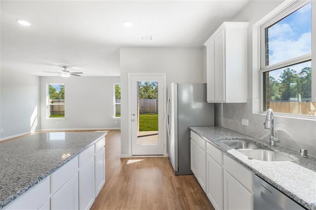 MLS# 21136354 - Built by HistoryMaker Homes - Mar 2026 completion! ~ 4.99% fixed rate with closing cost assistance. Ready in February. Boasting 1,730 square feet, this thoughtfully designed home features 4 spacious bedrooms, including a luxurious primary suite, and 2 full bathrooms. The open floor plan seamlessly connects the living and dining areas, enhanced by decorative lighting and granite countertops. The eat-in kitchen is a chef's delight, complete with a gas cook top, plenty of cabinets, kitchen island and pantry. Relax outdoors on the covered patio overlooking a beautifully landscaped massive backyard with a sprinkler system. Additional highlights include high-speed internet availability, energy-efficient heating and cooling systems, and a 2-car garage. Located within the highly-rated Godley ISD, this property offers an exceptional opportunity to enjoy modern living in a desirable community setting. Low tax rate and low annual HOA dues. Large dog park, play ground & covered pavilion are yours to enjoy.