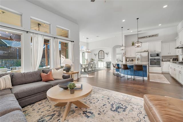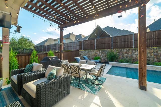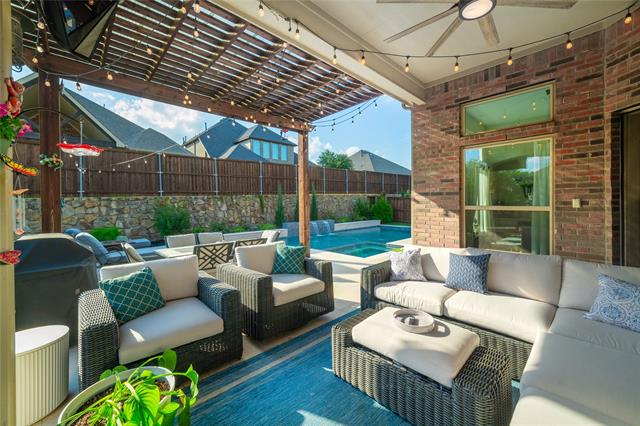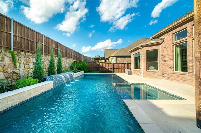 This stunning single-story home offers 3 bedrooms, 2 bathrooms, plus a dedicated office in Trinity Falls, one of the area’s most desirable master-planned communities. From the moment you step inside, you’ll be impressed by the 12-foot ceilings, 8-foot doorways, and elegant engineered wood floors that flow seamlessly throughout. At the heart of the home, the chef-inspired kitchen boasts a massive island, stainless steel appliances, abundant cabinetry, and open sightlines to the spacious living and dining areas—perfect for gatherings and everyday living. The luxurious primary suite features a spa-like bath with dual vanities, soaking tub, separate shower, and a walk-in closet. Secondary bedrooms are thoughtfully designed with flexibility in mind, while the private office makes working from home both quiet and convenient. Step outside to your own backyard retreat! A spectacular Nov. 2024 40’ x 15’ pool with LED lights, bubblers, Hayward equipment, 6-foot depth, and oversized spa creates the ultimate entertaining space. An expansive covered patio ensures year-round outdoor enjoyment. Trinity Falls is a 2,000-acre master-planned community with incredible amenities: 2 swimming pools, 2 clubhouses, fitness center, dog park, multiple playgrounds, splash pads, a sprawling 350-acre natural park with trails, fishing lakes, amphitheater, & an 18-hole disc golf course. Award winning Frazier Elementary School is right in the neighborhood enhances—all this just minutes from shopping, dining, and major highways!