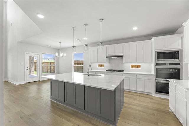 MLS# 20621176 - Built by First Texas Homes - Ready Now! ~ Up To $20K Closing Cost Assistance for Qualified Buyers - See Sales for Details!Situated on a 70 ft. homesite with a premium elevation, this home boasts a 3-car garage for ample parking space. Inside, discover an open floorplan designed for unforgettable family gatherings. The gourmet kitchen showcases built-in stainless steel appliances, a spacious California Island, and abundant modern cabinetry and lighting. A sizable utility room with built-in cabinetry adds practicality. Enhanced hardwood floors grace the living spaces and primary bedroom. On the first floor, find a versatile second full bedroom and bathroom combination, ideal for a study or secondary bedroom. Upstairs, a cozy reading loft complements additional bedrooms and another full bath, completing this inviting living space!