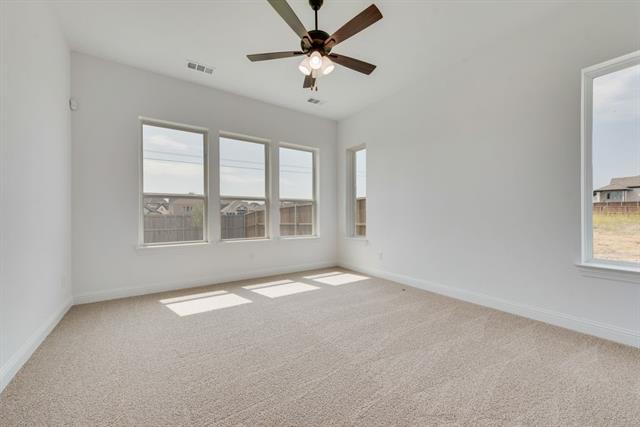 Just completed and move-in ready, this stunning new Grand Home is nestled in a vibrant, master-planned community designed for outdoor living. With striking stone accents, onyx shingles, and a sleek contemporary front door, the curb appeal is undeniable. Located just four blocks from resort-style amenities including a pool, playground, fishing pond, and scenic bike trails, this home offers both luxury and lifestyle. This north facing home sits on a lot that faces a peaceful pond and is backed to a greenbelt with walking trail. Inside, the design boasts four spacious bedrooms, including a private guest suite on the main floor—ideal for visitors, a nursery, or a home office. The dramatic vaulted family room features rich wood floors, a gas fireplace, and is pre-wired for a flat-screen TV, creating a perfect space to relax or entertain. Formal living and dining areas add elegance and versatility, while upstairs, a large game room and dedicated media room provide fun and comfort for the whole family. Custom design touches include a sleek staircase with wrought iron spindles, 8-foot interior doors, and Rev Wood flooring. The open concept kitchen is a chef’s dream, with granite slab countertops, Shaker-style cabinetry, a gas cooktop with a sleek stainless and glass vent hood, full bowl sink, trash can drawer, spice cabinet, and an oversized island at the center of it all. Retreat to the luxurious primary bath featuring a garden tub, Marlana vanities with rectangular sinks, and a glass-tiled walk-in shower. Bedroom four even includes its own private reading loft, adding charm and functionality. This home is also equipped with modern conveniences like a security system, sprinkler system, and energy-efficient construction with R-38 insulation, 2x6 walls, and full Energy Star certification. With full builder warranties and designer upgrades throughout, this is more than a new house—it’s your new home.