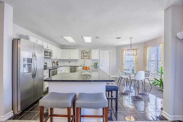Look what's back on the market! Priced to sell! This stunning two-story, three-bedroom home offers modern elegance and spacious comfort. The gourmet kitchen features black quartz countertops, white cabinetry, and stainless-steel appliances. A marble fireplace anchors the living room, creating a warm and inviting atmosphere. His and Her's walk-in closets, oversized jetted garden tub and a split bathroom vanity area makes spaciousness a breeze. Upstairs, enjoy extra-large bedrooms with plenty of space for relaxation or work. The backyard is an entertainer’s dream, complete with a built-in barbecue, a charming pergola, and a storage shed for added convenience. 2 stories, 3 spacious bedrooms Modern kitchen with quartz counters & white cabinets Elegant marble fireplace centerpiece Outdoor entertaining with pergola & BBQ Extra-large upstairs bedrooms Backyard storage shed that provides more than ample storage for everything.