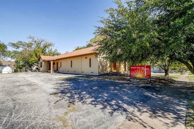 Turnkey commercial opportunity on a huge, high-visibility corner lot with close proximity to downtown Fort Worth! Zoned F1 Commercial, this versatile property offers endless potential for a church, restaurant, event venue, daycare, community center, office, or redevelopment project. A NEW ROOF IS COMING AND THE BUYER CAN PICK THE COLOR! The building offers a spacious open layout with three half baths, a kitchenette, and an office, and sits on a large corner lot with approximately 45 parking spaces, providing exceptional convenience and exposure. Located in a rapidly evolving area, this property presents a rare chance to restore, repurpose, or reimagine a space with tremendous potential for business, community, or worship use. BRING ALL OFFERS!