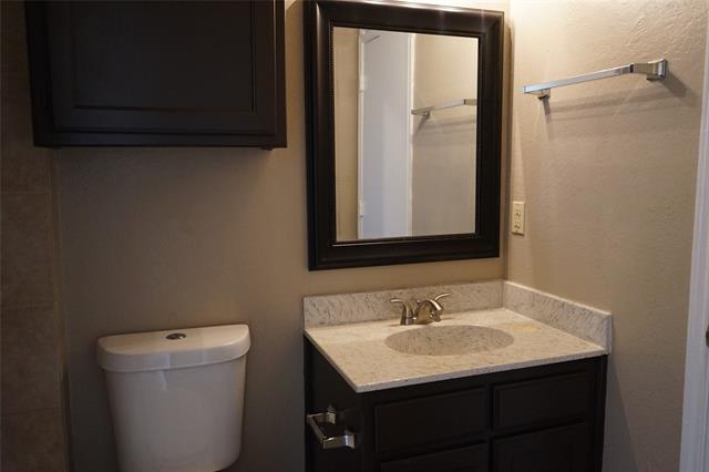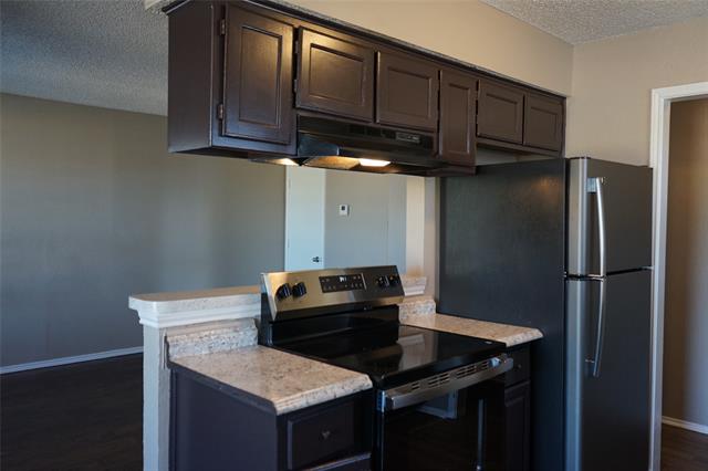 Upstairs Unit of Fourplex. Two bedroom, one bath. Walk in closets in both bedrooms. Large storage closet in living room. Wood look laminate in den and bedrooms. Vinyl in kitchen and bathroom. Refrigerator included. Lawn care included in rent! Convenient location off 287 in Mansfield.